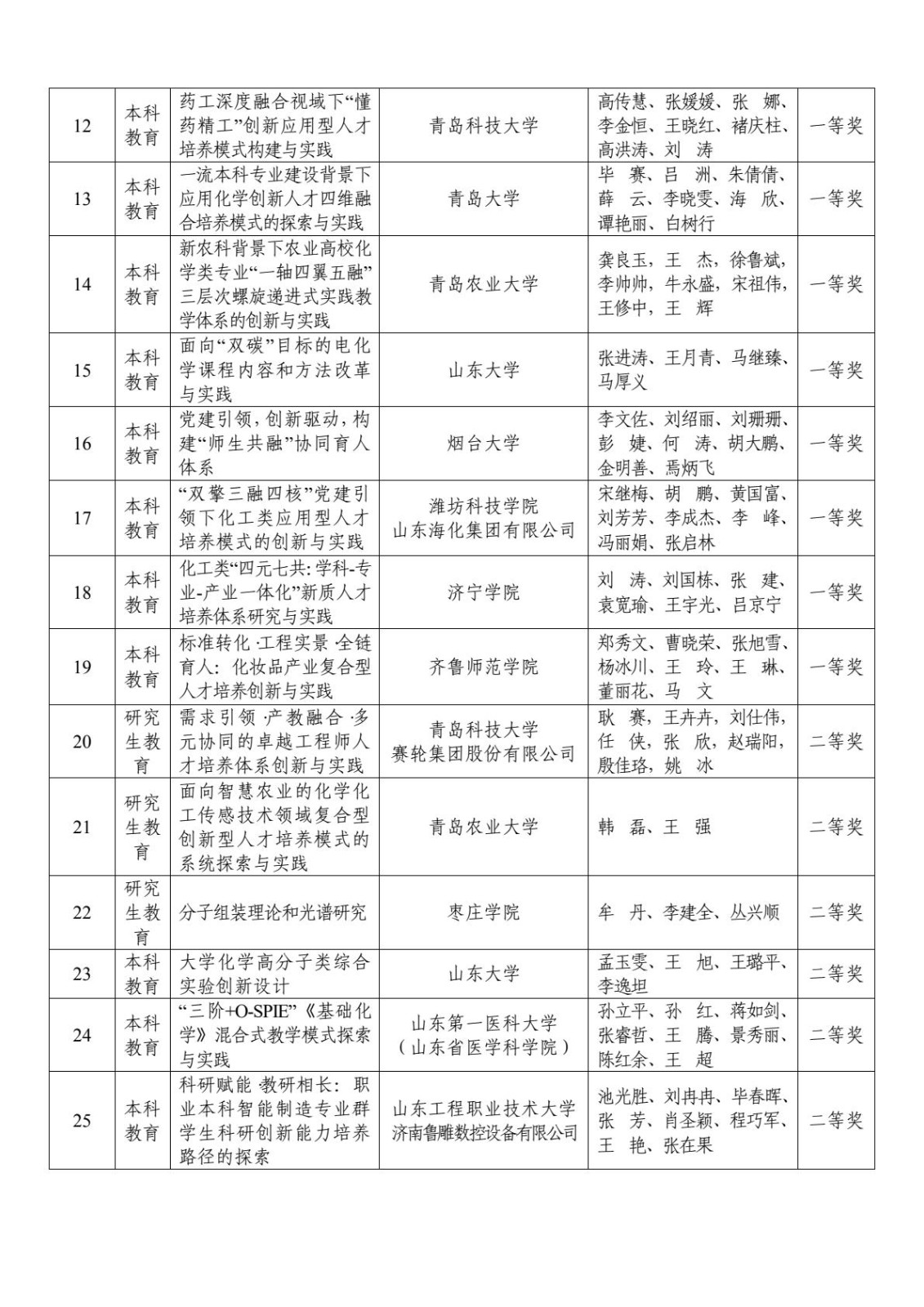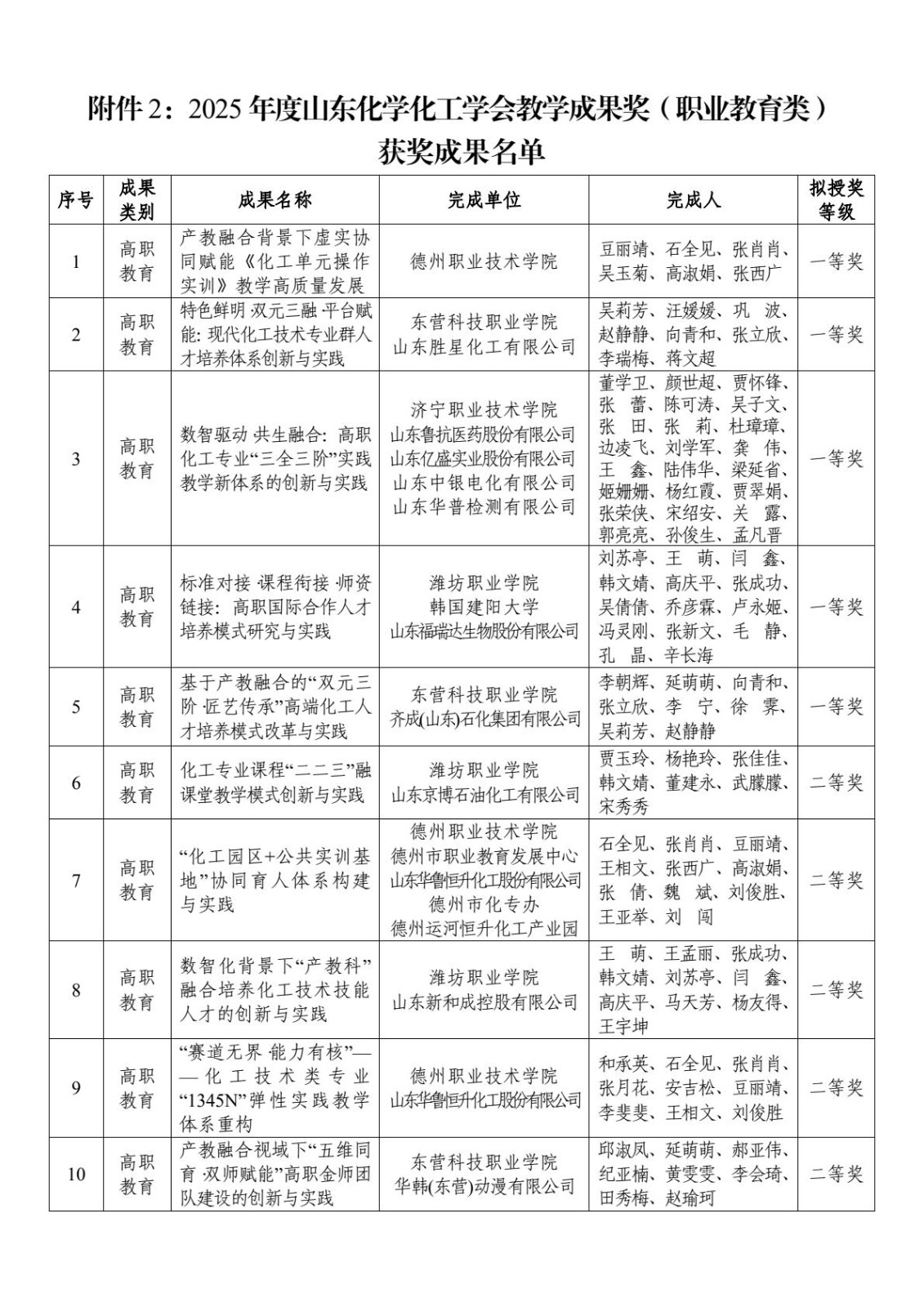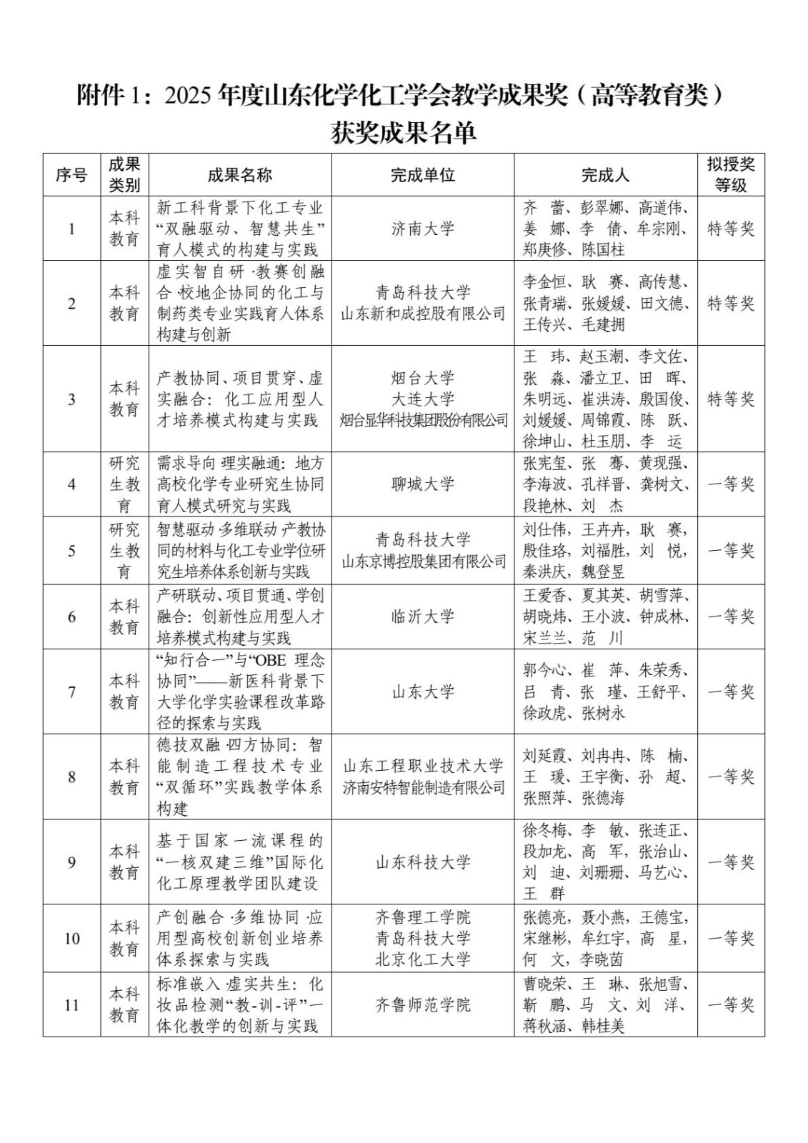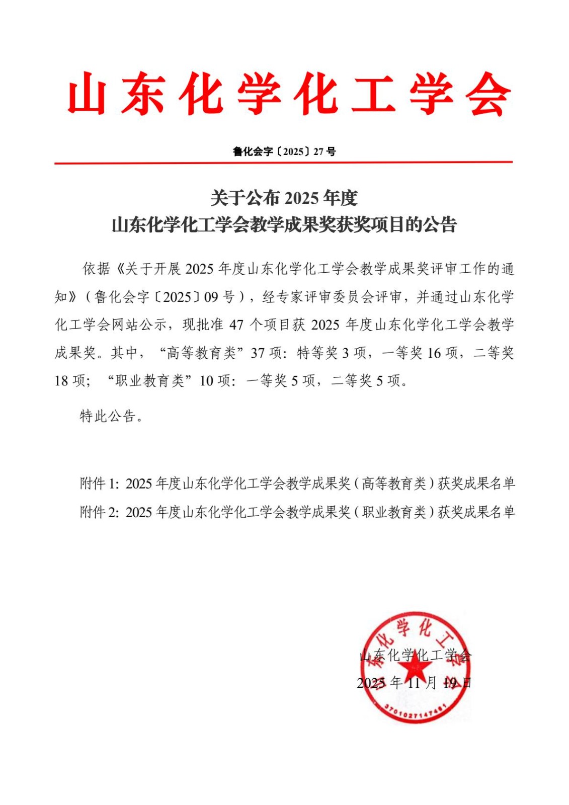 關(guān)于公布2025年度山東化學(xué)化工學(xué)會(huì)教學(xué)成果獎(jiǎng)獲獎(jiǎng)項(xiàng)目的公告
