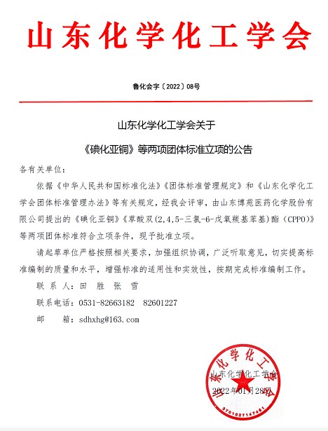 山東化學化工學會關(guān)于《碘化亞銅》等兩項團體標準立項的公告