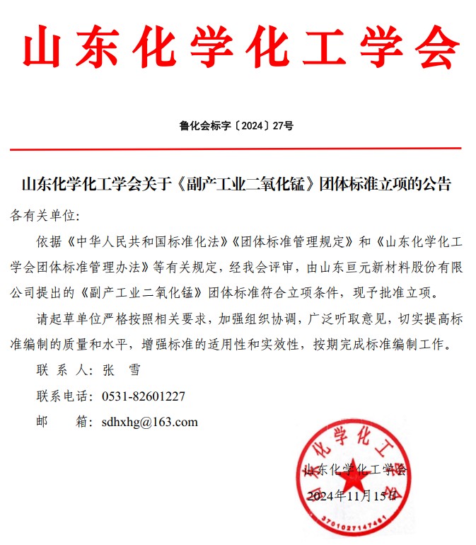 山東化學化工學會關于《副產工業二氧化錳》團體標準立項的公告