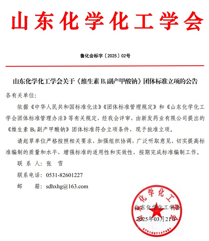 山東化學化工學會關于《維生素B1副產甲酸鈉》團體標準立項的公告