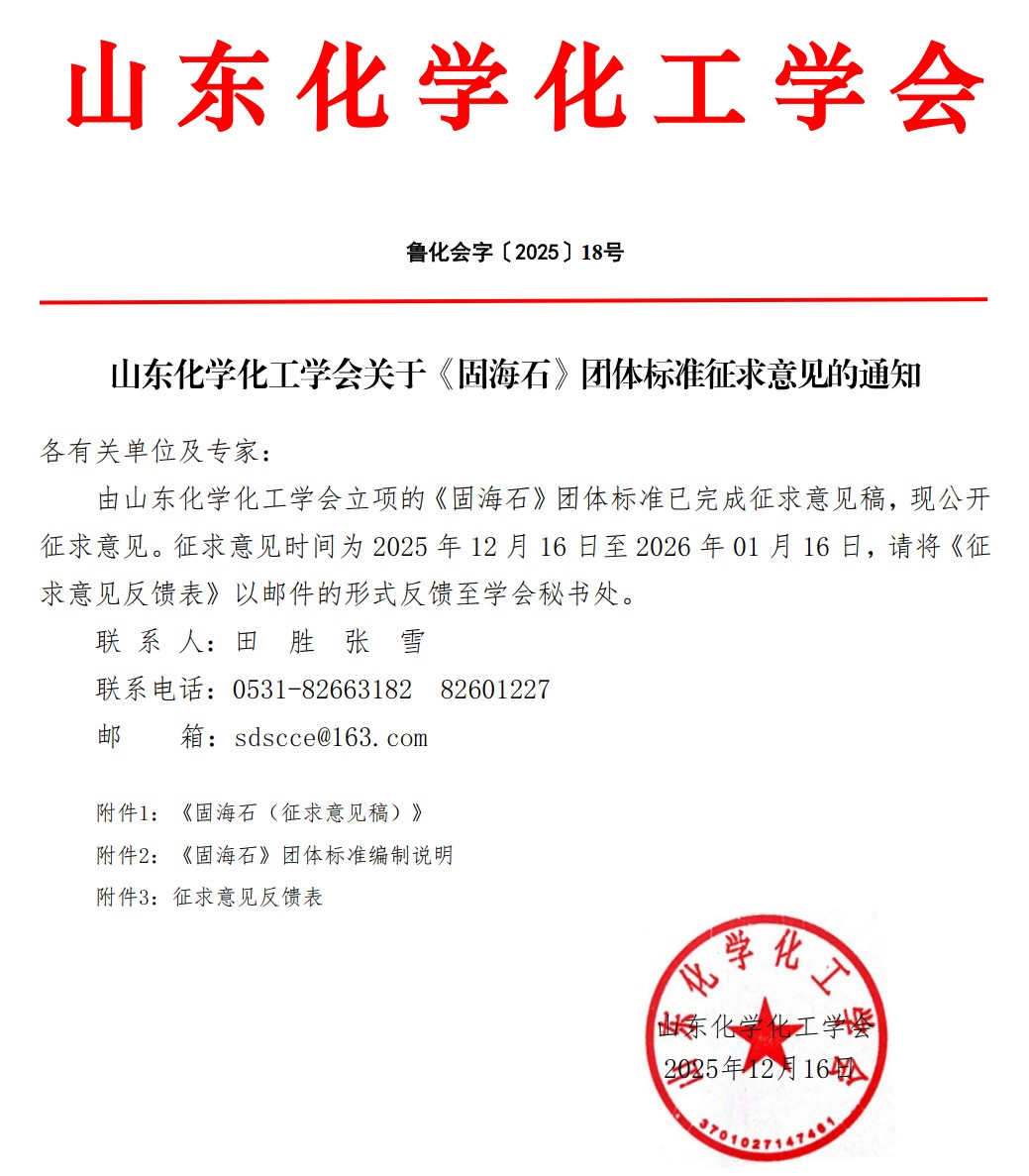 山東化學化工學會關于《固海石》團體標準征求意見的通知