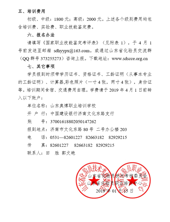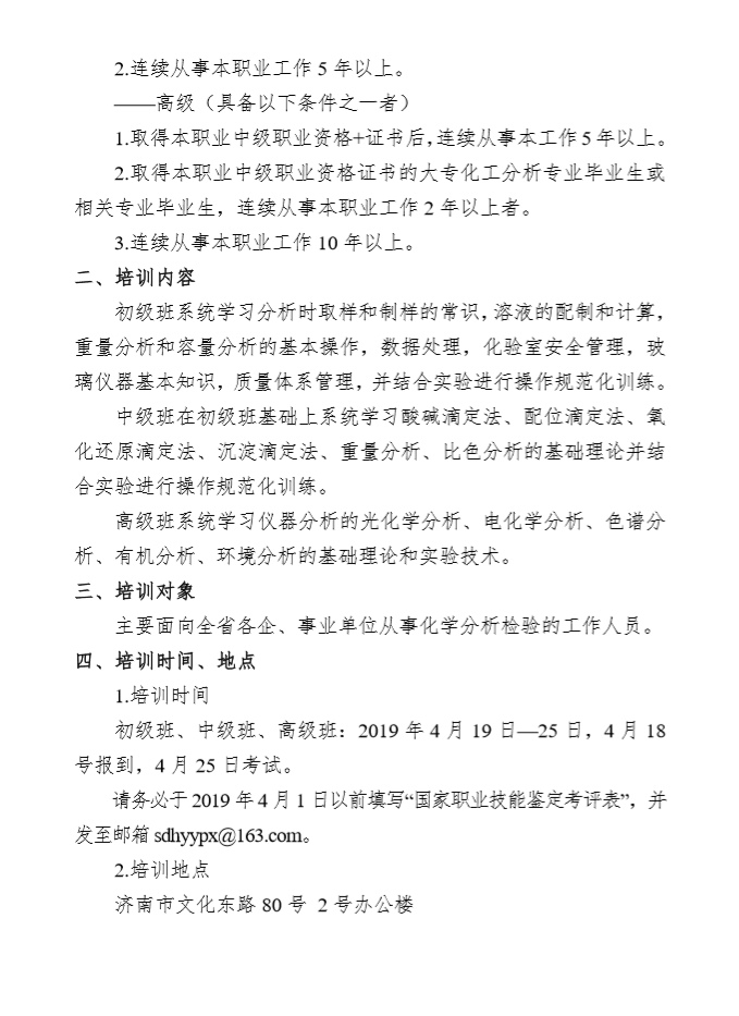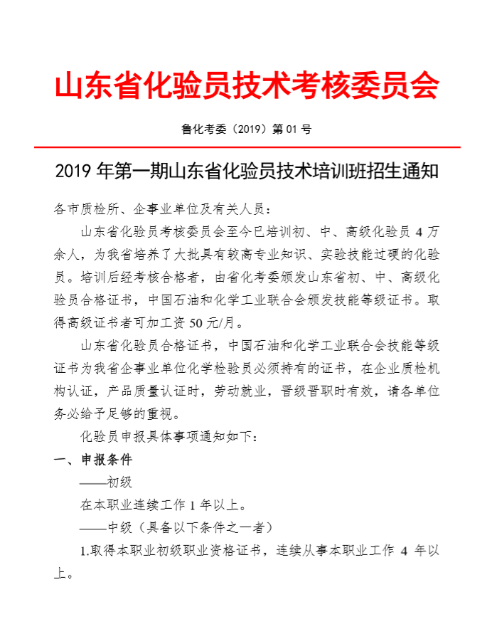 山東省化驗(yàn)員培訓(xùn)通知(2019年4月)