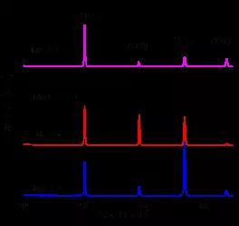 圖1. 不同晶面擇優(yōu)取向Mo基催化劑的XRD圖譜