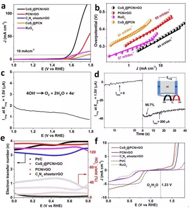 c) CoSx@PCN/RGO在催化OER過程中環電流密度。
