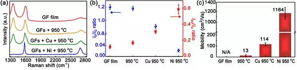 (m) 高質量石墨烯薄膜的載流子遷移率對比圖(對應SEM圖 f-j樣品)