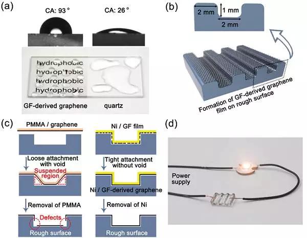 (a) 高質量石墨烯薄膜在石英基板上的親/疏水性對比