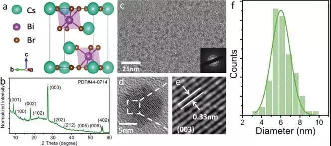 f.Cs3Bi2Br9納米晶體尺寸分布直方圖