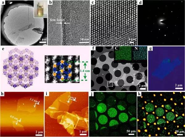 (j)超大片二維三嗪高分子的熒光顯微鏡圖像;
