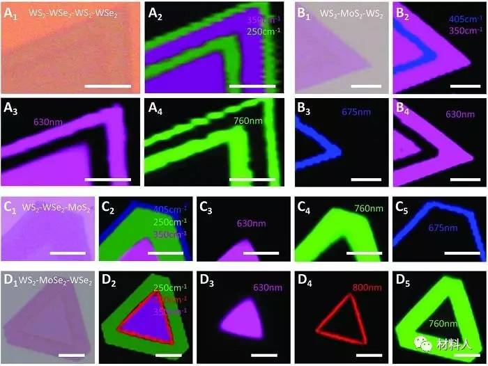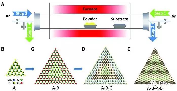 圖一、通過改性CVD,2D單層異質結、多異質結和超晶格的強勁外延生長