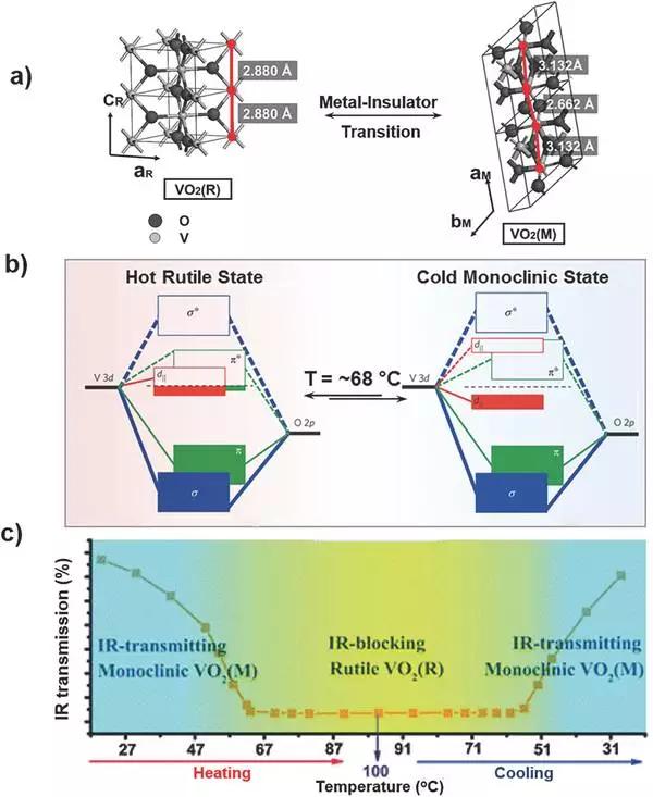 圖1. VO2的兩種晶體結構、能帶結構及其典型的相變過程