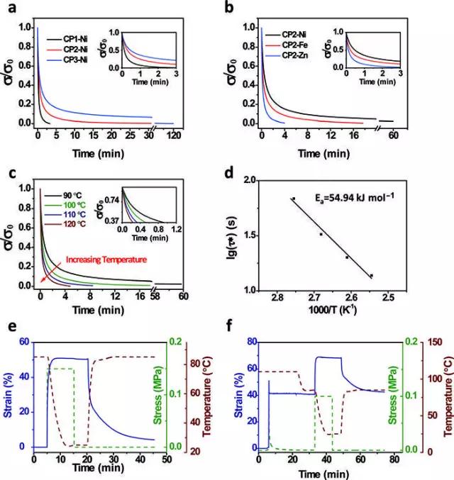 (b) 金屬離子的梯度分布和其在100℃下的應力松弛行為;