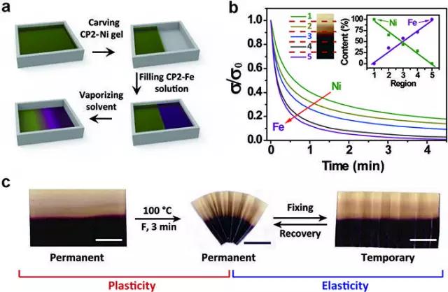 圖3 金屬配位超分子聚合物網絡材料的梯度塑性