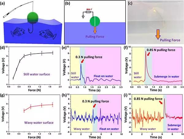 圖7. 球形水基摩擦納米發電機作為自驅動釣魚傳感器