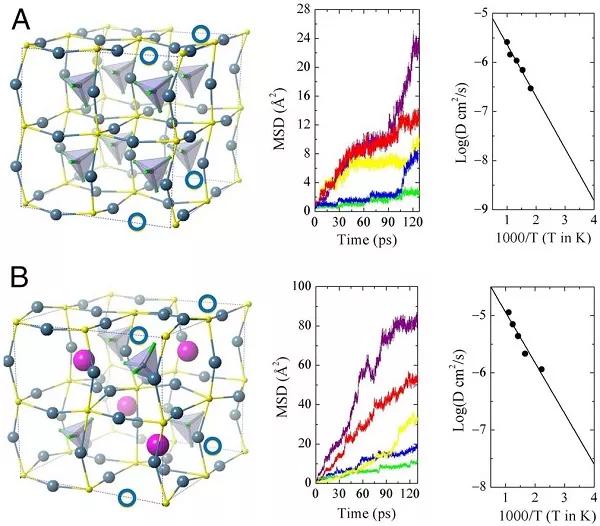 圖3:分子動力學模擬得到的基于團簇的鋰離子固體電解質Li3SBF4和Li3S(BF4)0.5Cl0.5的離子電導率