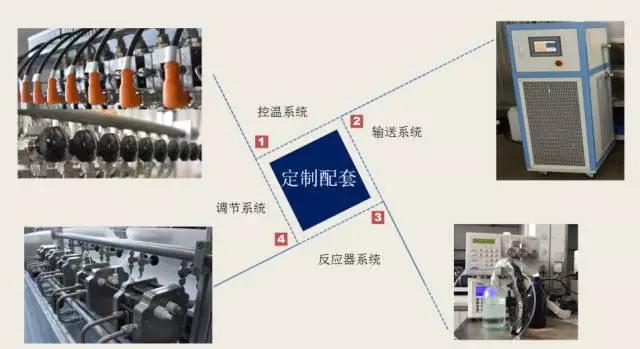 針對不同的反應需要使用不同的構筑單元,以達到期望的效果。常見的構筑單元包括,控溫系統(如冷熱一體機),輸送系統(如泵),反應器系統(微反應器),調節系統(如熱電偶)等,如圖1。