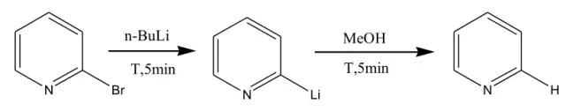 (1)對于使用有機鋰試劑的反應,一般都需要在-78℃氮氣保護下進行操作。首先進行常規反應操作,并且選取不同的溫度來嘗試研究對反應的影響。選取2-溴吡啶為模板底物,分別在以下溫度進行鋰鹵交換反應,-78℃,-60℃,-40℃,-20℃和0℃,并在相同溫度下用甲醇粹滅。