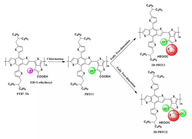 全二維共軛側鏈氯取代聚合物太陽能電池給體材