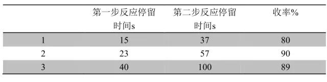 表二 停留時間對反應結果的影響