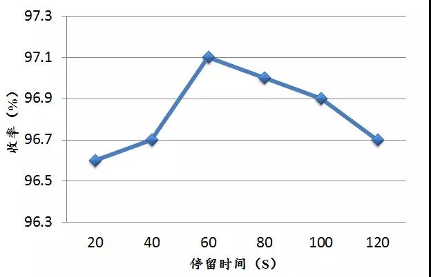 從上圖可以看出,當(dāng)反應(yīng)停留時間為60s時,對甲氧基苯甲酸含量達(dá)到97.1%,當(dāng)停留時間少于60S,由于停留時間不足導(dǎo)致反應(yīng)不夠充分,而反應(yīng)停留時間過長時,反應(yīng)器無法達(dá)到最佳的混合效果,也會導(dǎo)致反應(yīng)不理想。