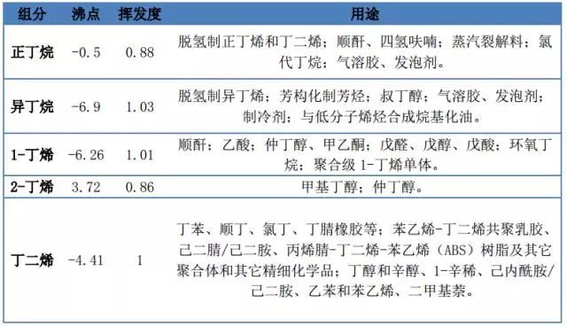 醚后碳四主要組分的性質與用途