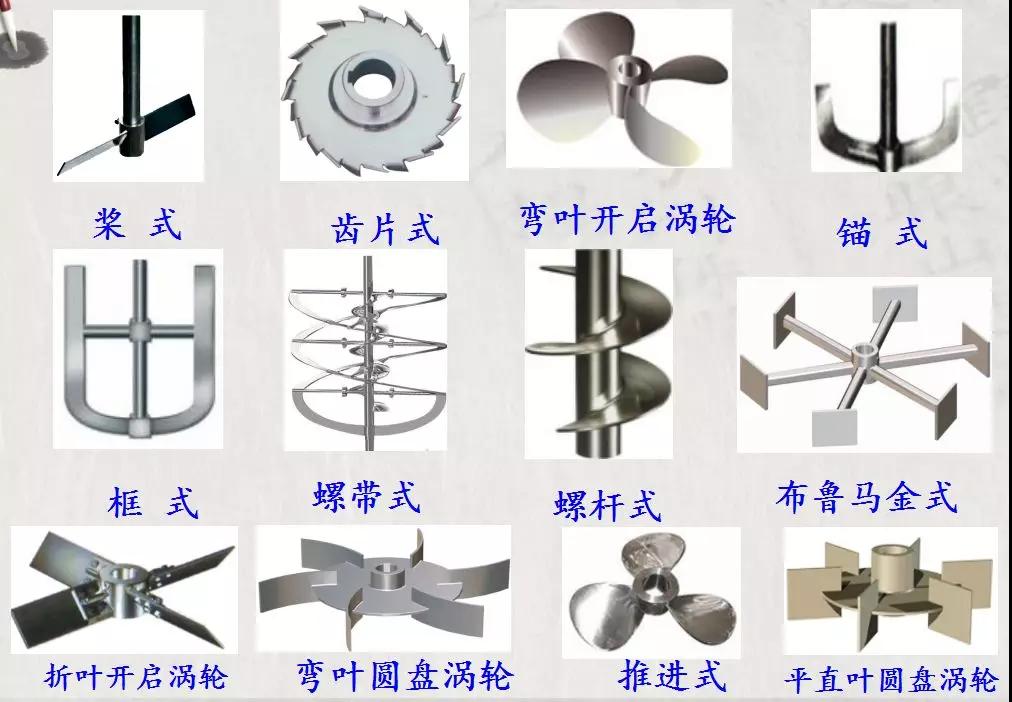 推動靜止的液料運動,維持攪拌過程所需的流體流動狀態,以達到攪拌的目的。攪拌器的主要部件是槳葉,因此槳葉的幾何形狀、尺寸、數量及轉速對攪拌器的功能和攪拌效果有重要影響。