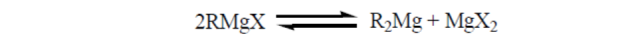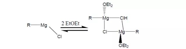 格氏試劑常用簡化通式“RMgX”表示,但真實的格氏試劑并非單分子烴基鹵化鎂(RMgX)的簡單溶液,而是R2Mg,MgX2,(RMgX)n等多種物質(zhì)經(jīng)過轉(zhuǎn)化形成的一種動態(tài)平衡混合體系,如