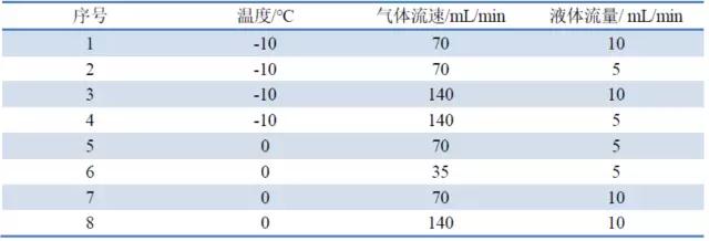 5.通過改變實驗變量壓力、流量、溫度,進行微反試驗。試驗參數(shù)如下: