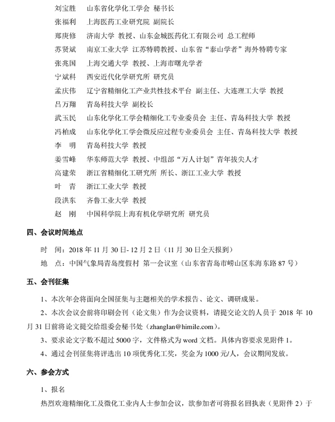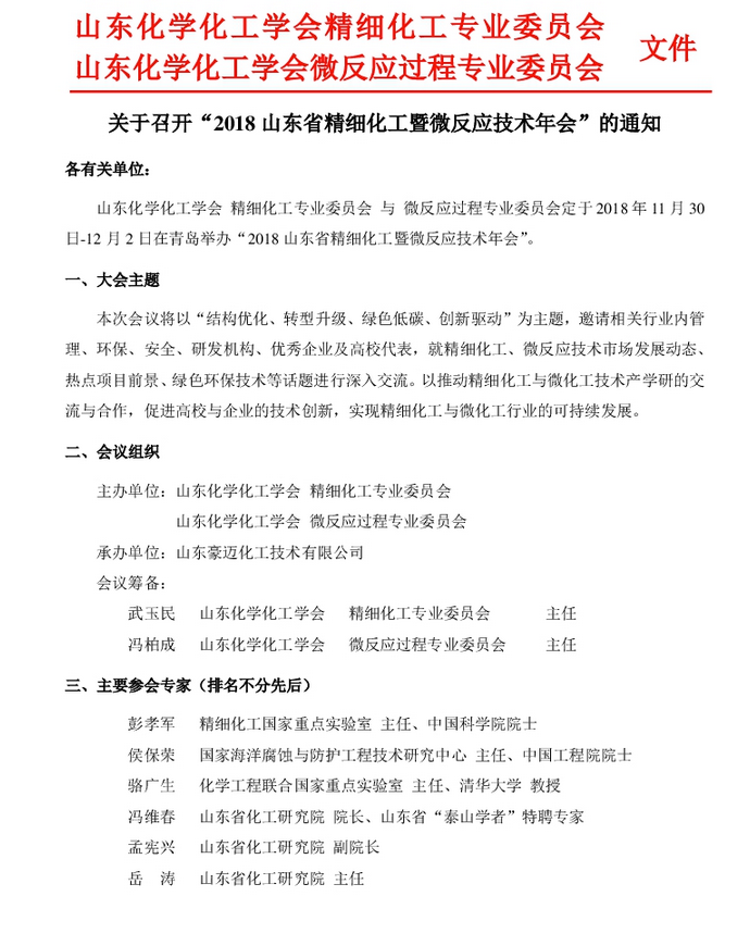 2018山東省精細化工暨微反應技術年會通知