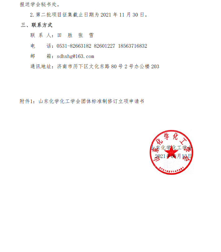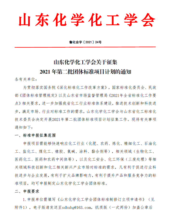 山東化學化工學會關于征集2021年第二批團體標準項目計劃的通知